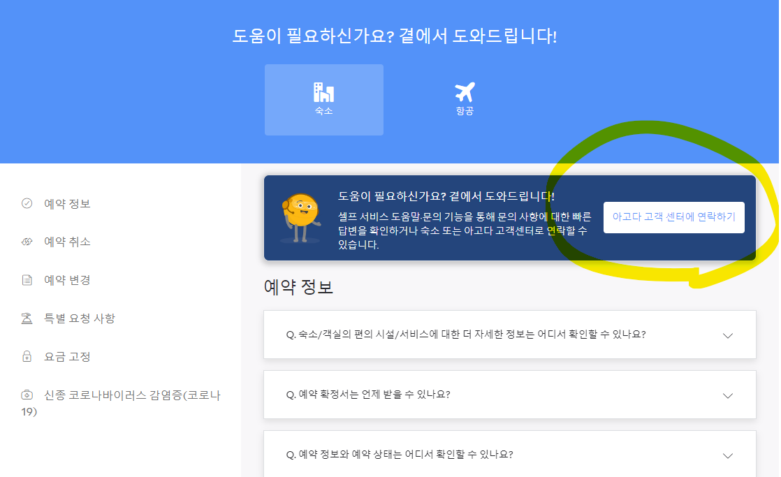 아고다(Agoda)는 고객 지원을 위해 다음과 같은 옵션을 제공합니다: