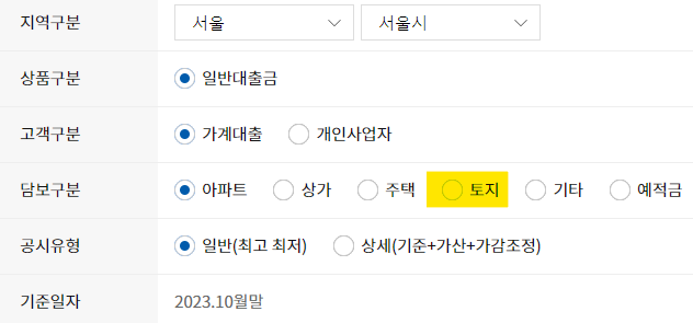 - 토지담보대출 : 현재 소유중인 토지를 담보로 대출하는 경우, 직접 개발 또는 가계 사업 자금으로 활용 목적인 경우