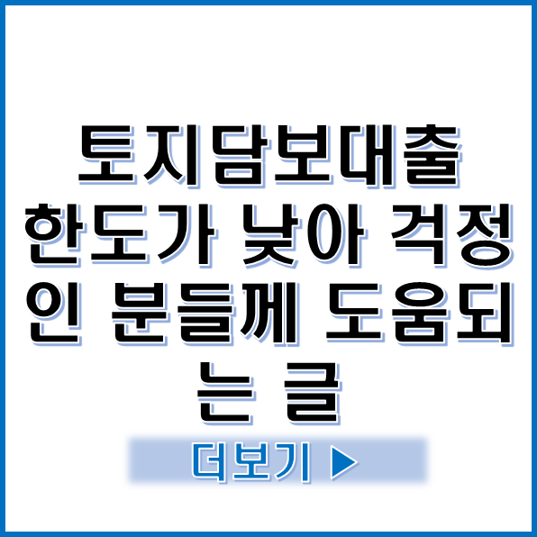 이 글은 토지 관련 대출에 대해 팁과 정보를 드리는 글이며 개인 상업적 유도 글이 아닙니다. 온라인 상에 만연한 중개 서비스 글이 많은데 선별하여 읽으시길 바랍니다.