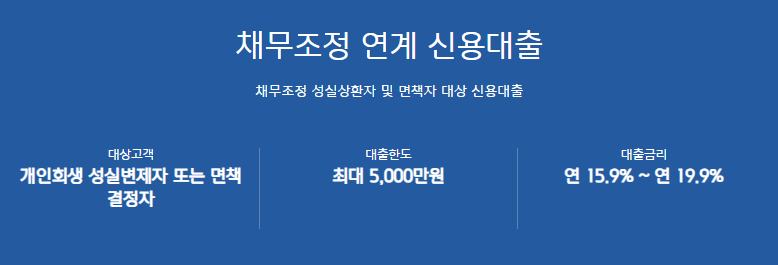 - 대상고객: 개인회생 성실변제자 또는 면책 결정자 , 신용점수 제한없음