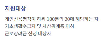 대출대상은 다음중 하나를 충족하여야 합니다.