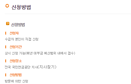 - 신청방법: 국민연금공단에 직접 가서 신청