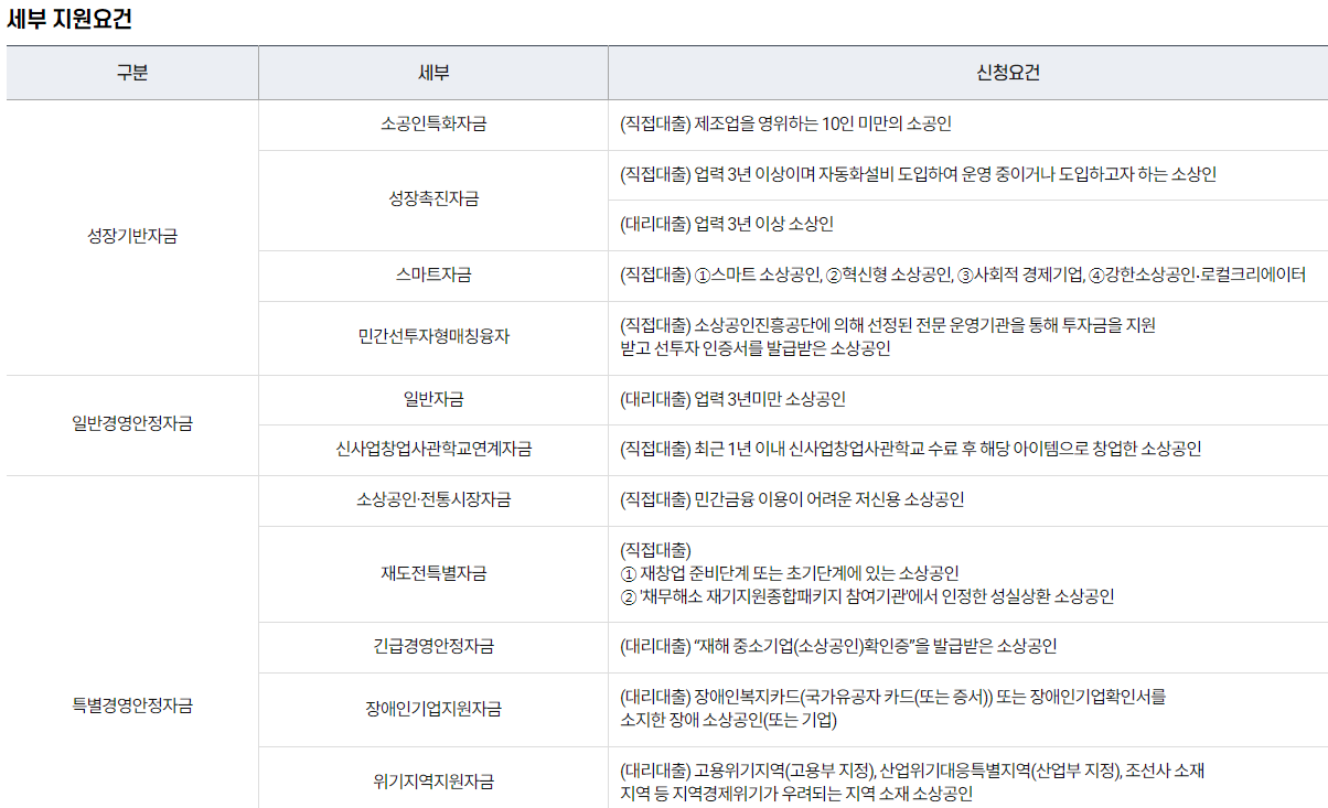 소상공인진흥공단에서 지원하는 정책자금 대출이 있습니다. 직접대출과 대리대출을 통해서 신청하실 수 있으며, 관련 내용은 아래와 같습니다.