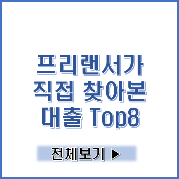 이중에서 가장 흔히 이용하는 프리랜서 대출 TOP8을 요약 정리하였으니, 후기 읽어보시기 이용해보시기 바랍니다.
