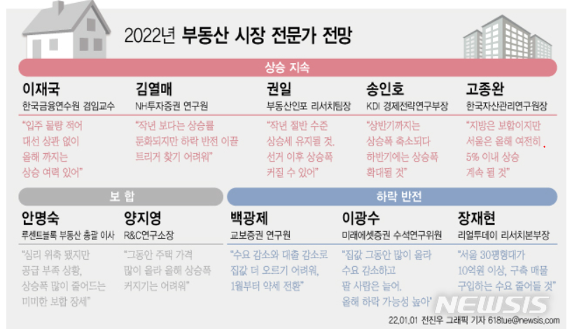 잠깐의 정체구간을 벗어나면 2022년에 다시 집값 상승이 이어진다고 보는 준 전문가 들이 많아요. 대부분 유튜브 부동산 관련 유투버 들이지만, 실제 투자를 통해 경험으로 체득한 사람들이 많기에 가성비 있는 투자 전문가들이라고 할 수 있죠.