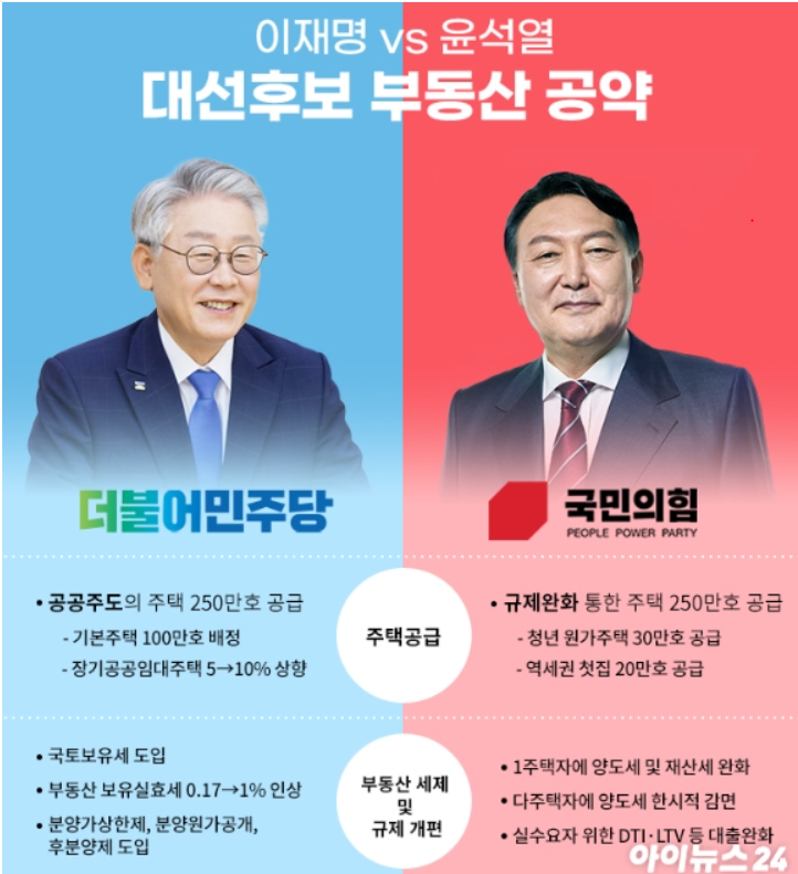 후보들은 모두, 부동산 공급을 늘리겠다는 공약을 내세우고 있으며, 이는 부동산 폭등을 잠재울 가장 근본적인 해결책임에는 틀림없습니다.