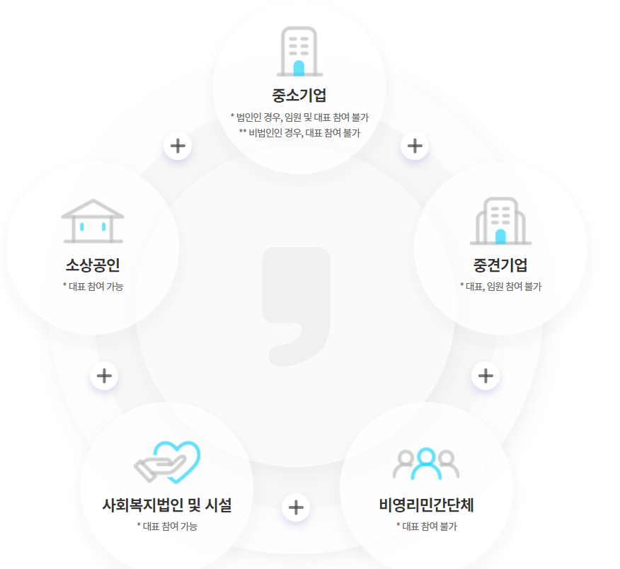 중소기업, 사회복지법인, 중견기업, 비영리 민간단체, 소상공인 근로자 입니다.
